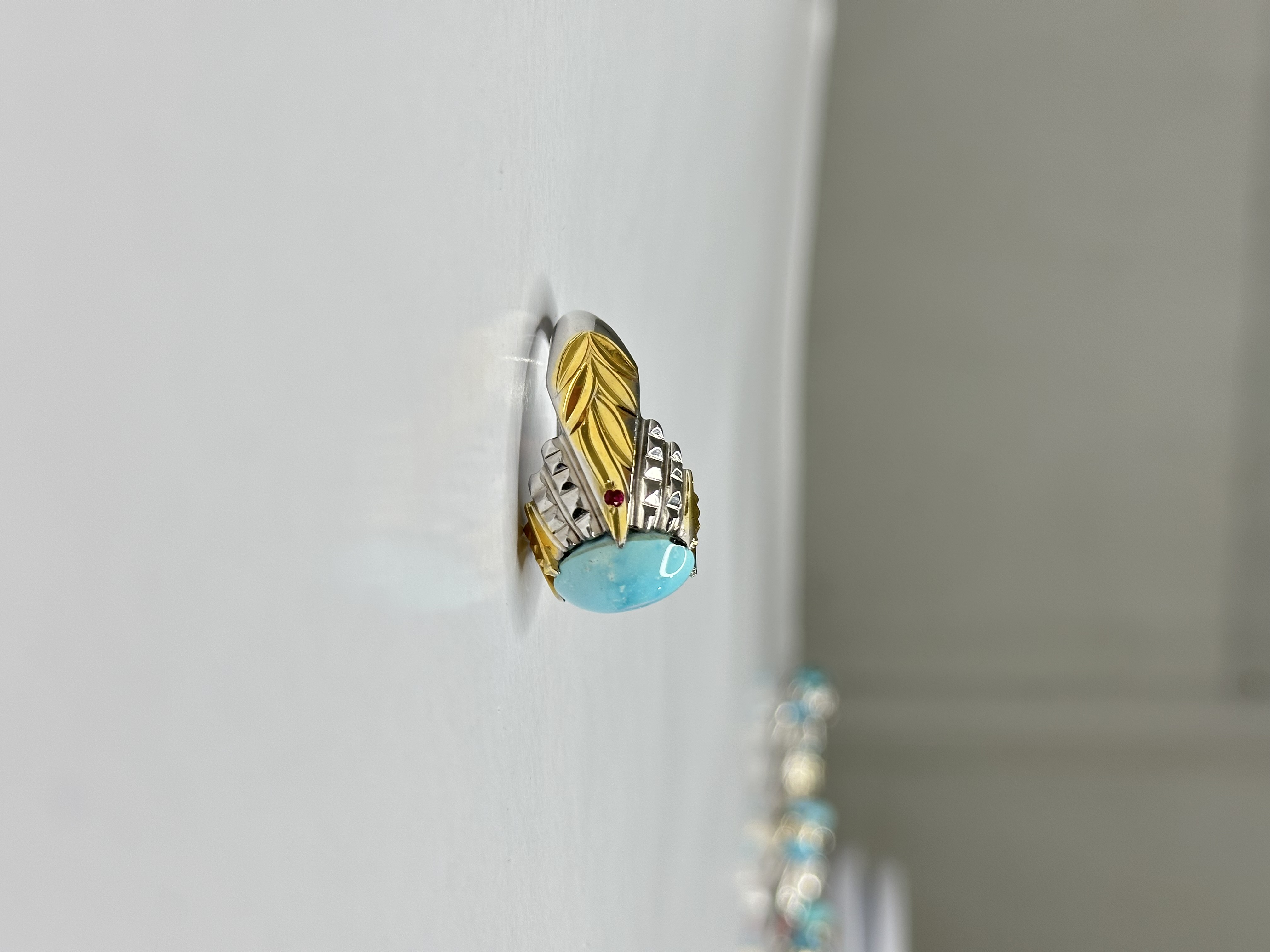 انگشتر نقره دست ساز فیروزه نیشابور با مخراج کاریه یاقوت