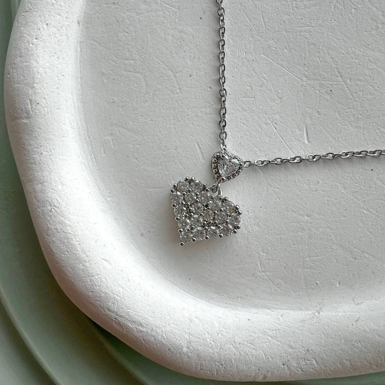 گردنبند قلب نگین سوارسکی زنجیر کاملا استیل رنگ ثابت ضدحساسیت استحکام نگین بالا طول زنجیر 45سانت (استاندارد) قفل طوطی