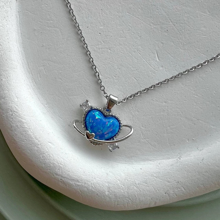 گردنبند قلب و زحل نگین آبی نگین سوارسکی زنجیر کاملا استیل رنگ ثابت ضدحساسیت استحکام نگین بالا طول زنجیر 45سانت (استاندارد) قفل طوطی