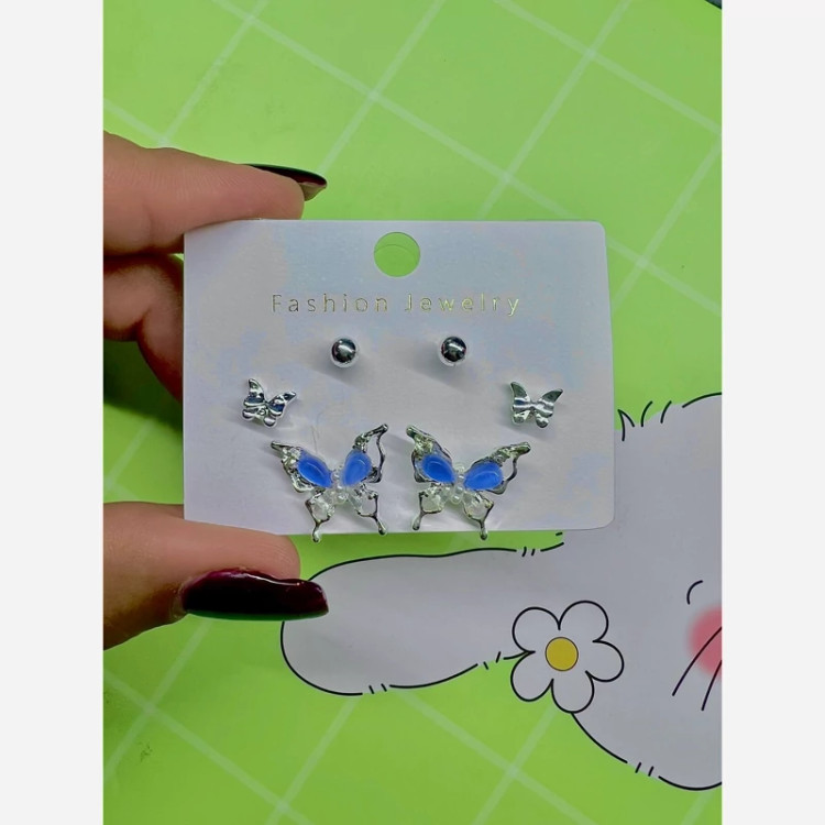 پک گوشواره پینترستی پروانه آبی ثبات رنگی بالا ضدحساسیت خیلی خوشگل و نازن🥹😍 خیلی راحت با یه قیمت مناسب با هر استایلی که میخوای ستش کن😍 و اینکه بی نهایت رویاییه🫠✨