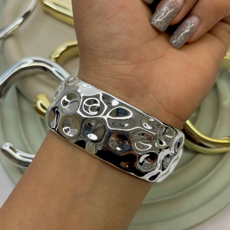 بنگل چکش کاری شده نقره ای فری سایز (استاندارد) ضدحساسیت کاملا رنگ ثابت خیلییی مدلش خاصه اصلا هیچ آیتم دیگه ای هم تو استایلت استفاده نکنی خودش به تنهایی استایلتو برات میسازه👌🏻😍✨