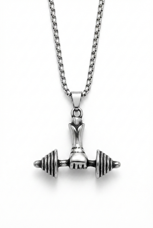 گردنبند تمام استیل طرح دمبل و مشت