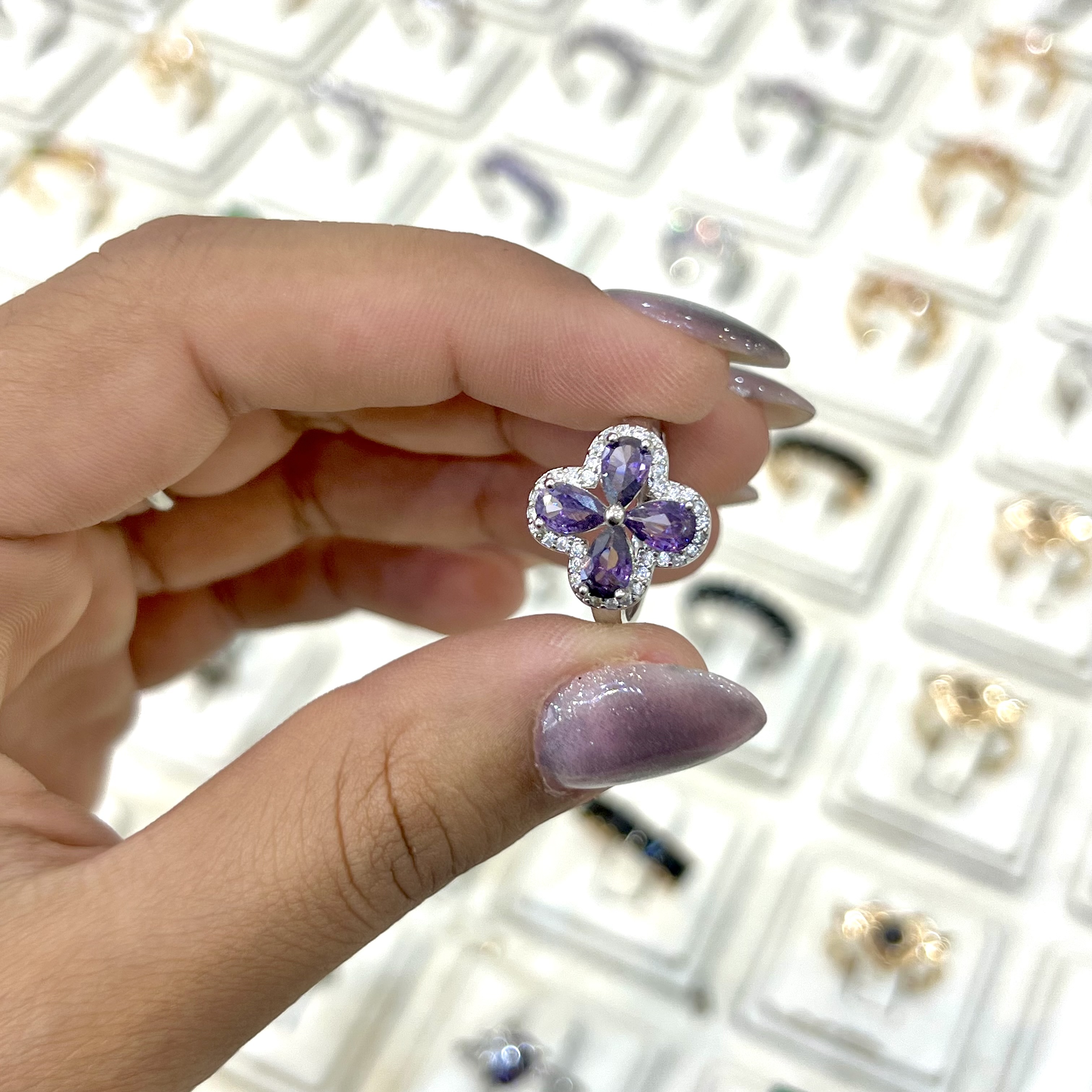 انگشتر جواهری طرح گل پینترستی
